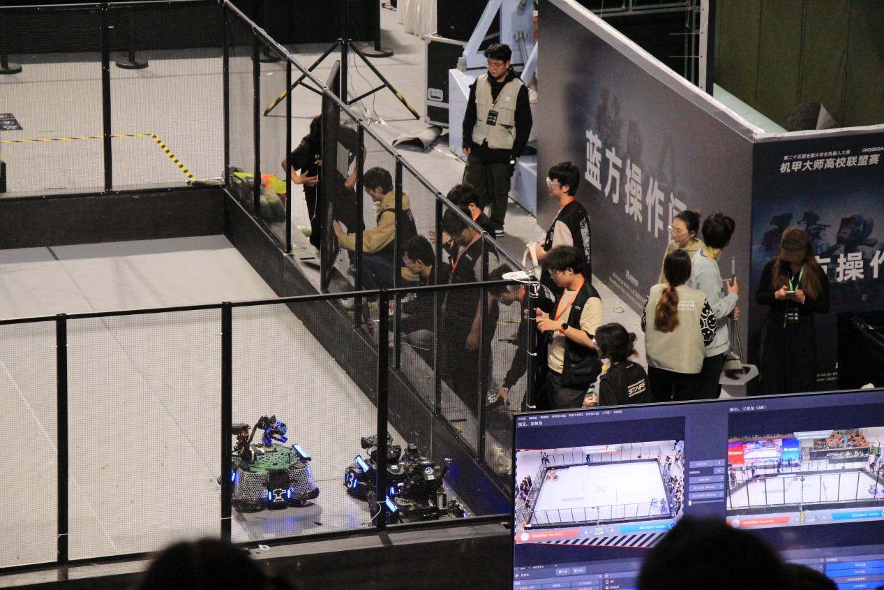 本次上海站赛事吸引了上海交通大学、复旦大学、同济大学、华东理工大学等30所高校300多名师生同台竞技。Nautilus(鹦鹉螺)机甲战队在创新创业学院张聪,MICHAEL KORS官网肖伟、杨星等老师的共同指导下,从2025年10月便启动全面备赛,团队所有成员寒假期间一直专注于机器人硬件迭代、电控算法调试、操作手实战训练、赛场战术推演等全流程准备,持续打磨设备稳定性与团队配合度,以最佳状态迎战各路强队。