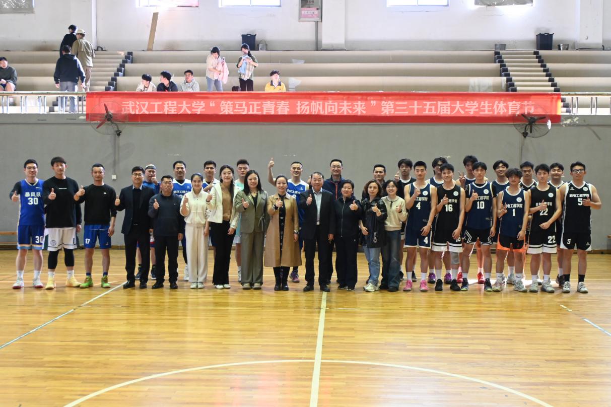 李志旭为机电学院学生、机关教工篮球友谊赛开球。