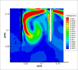 图5 静电场作用下的CaCl2溶液流场PIV分析