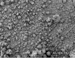 图2 20 V电压下实验25小时后阴极板表面结垢SEM图像